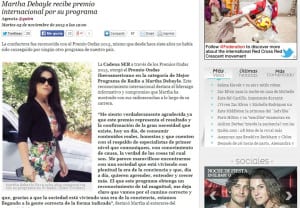Martha Debayle es reconocida a nivel internacional con el Premio Ondas Iberoamericano Mejor Programa de Radio.