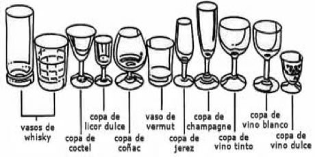 Copa Champañera: alta o Flauta. Base pequeña, tallo largo, borde delgado, cuerpo de aspecto delgado uniforme. Ese utiliza exclusivamente para servir champagne. Capacidad 7 oz.