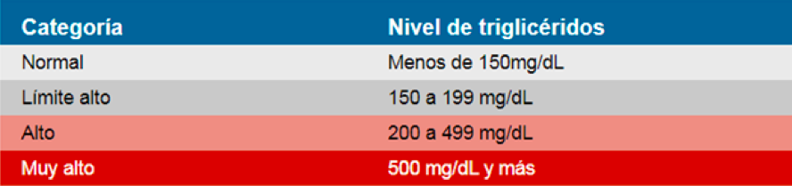 Existe una prueba de sangre que mide tus triglicéridos, junto a tu colesterol. Los niveles de triglicéridos se miden en miligramos por decilitro (mg/dL). Las pautas para los niveles de triglicéridos son:
