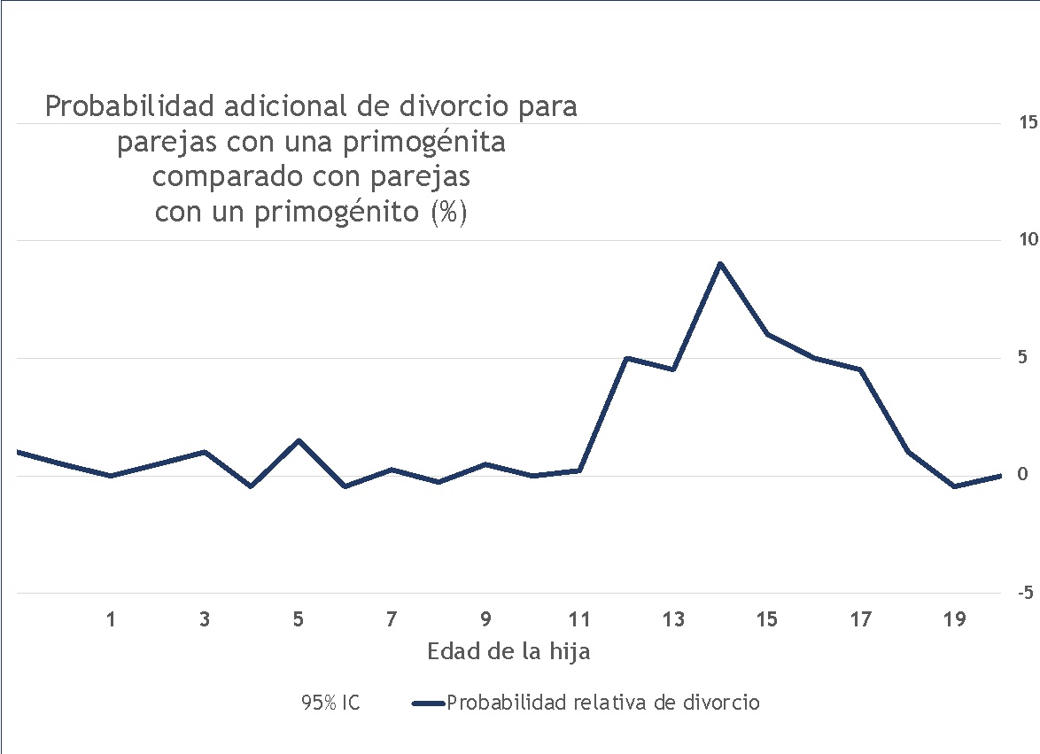 Los matrimonios en los que su primera hija es mujer tienen mayor probabilidad de divorciarse cuando ella llega a la adolescencia.