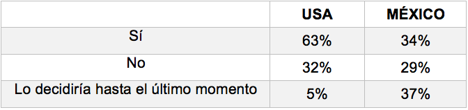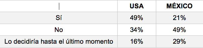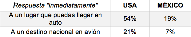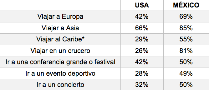 *En el caso de Estados Unidos se preguntó por Los Cabos o el Caribe.