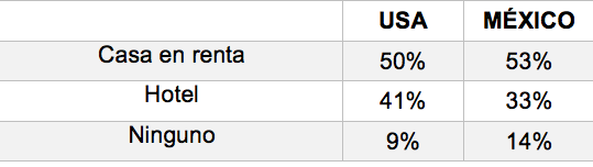 Un aspecto en el que en ambo países coinciden es que preferirían hospedarse en una casa en renta antes que en un hotel. Y que, en el caso de hospedarse en un hotel, se sentirían más cómodos estando en uno pequeño (menos de 200 habitaciones).