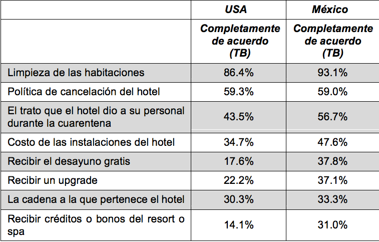 En ambos países lo más importante al elegir un hotel a partir de ahora, será la manera en la que se haga la limpieza de las habitaciones, seguido por las políticas de cancelación del hotel.