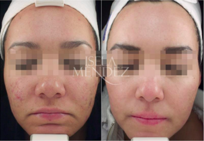 Finalmente se sella el procedimiento con un retinol al 4% para sumar el efecto del peeling, este tratamiento es excelente y lo podemos complementar con ácido hialurónico NO reticulado junto con las microaguajas, se aconsejan 3-6 sesiones una por mes dependiendo la severidad.