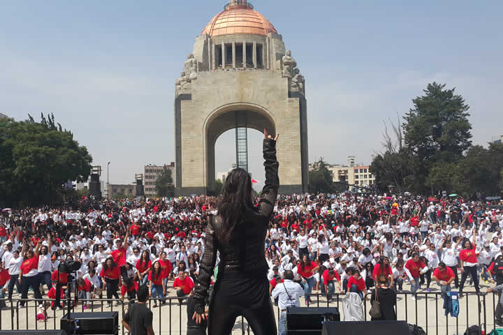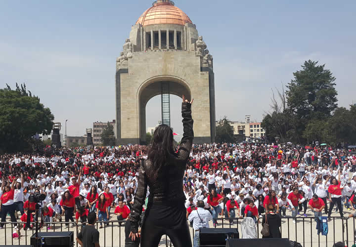 El staff hizo entrega de los kits de bienvenida, playeras color blanco y negro. Los participantes aún no ingresaban a la explanada y los ensayos se repetían intensamente. Todos preparados para participar en el flashmob #MéxicoDebayle.