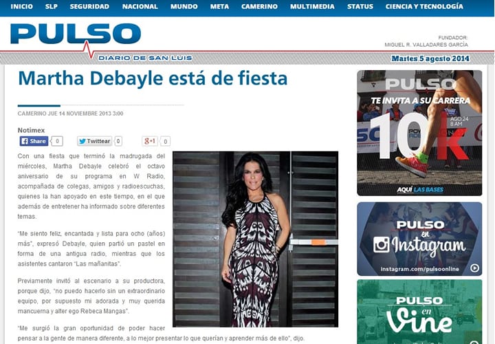 Con una fiesta que terminó la madrugada del miércoles, Martha Debayle celebró el octavo aniversario de su programa en W Radio, acompañada de colegas, amigos y radioescuchas, quienes la han apoyado en este tiempo, en el que además de entretener ha informado sobre diferentes temas.