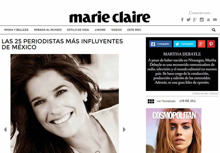 A pesar de haber nacido en Nicaragua, Martha Debayle es una reconocida comunicadora de radio, televisión y el mundo editorial en nuestro país. Se hace cargo de la conducción, producción y edición de los contenidos. Además, es una gran líder de opinión.