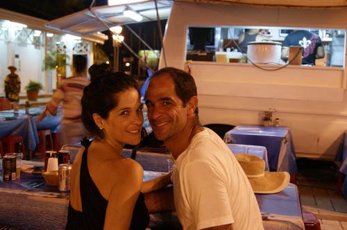 Con Spiderman comiendo en los camioncitos típicos en Papeete