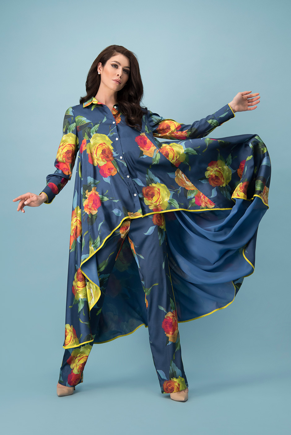 Floral-Print Oversized Button-Down Shirt