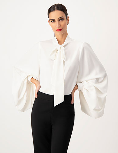 Satin Puff-Sleeved Top in White