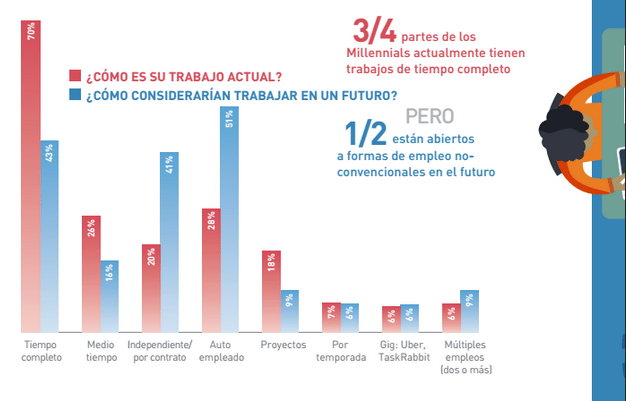 - ¿No nos creen? Vean las estadísticas: 70% de los Millennials mexicanos trabajadores tiene empleos de tiempo completo.