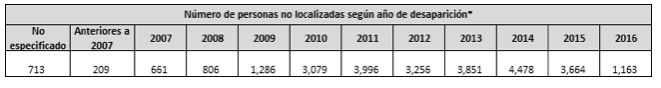 Casi el 50% del total de estas desapariciones tuvieron lugar entre 2012 y 2014.