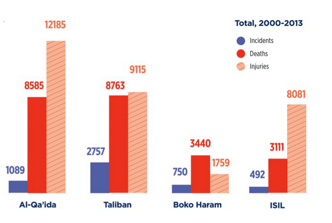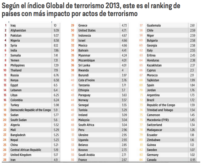 82% de las muertes causadas por terrorismo ocurren en 5 países
