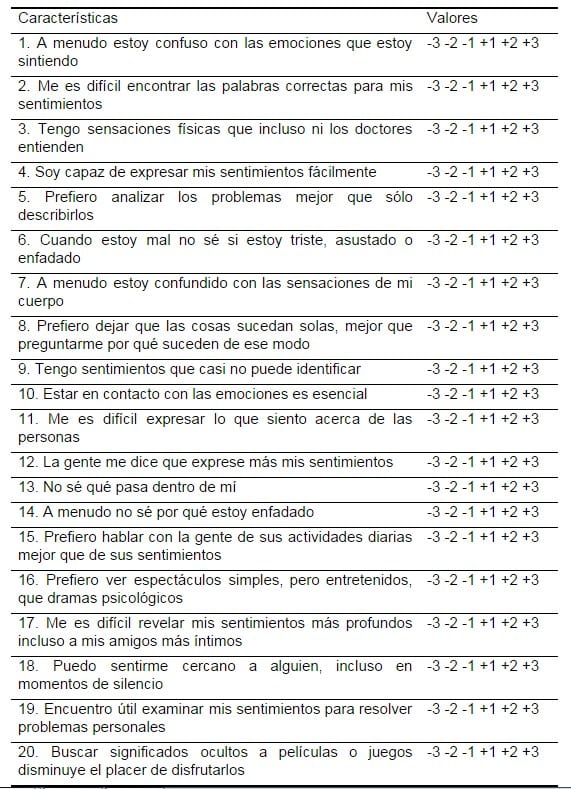 *Mayor a 60 puntos: Alexitimia diagnósticada