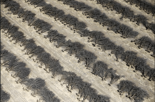 Casi el 80% de las almendras en el mundo, son cultivadas en California, donde hay un clima muy seco. Lo cual hace que los agricultores profundizan la tierra, lo que provoca desestabilizar canales y hasta la carretera, creando inestabilidad geográfica y da paso a terremotos.